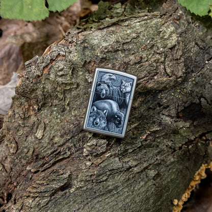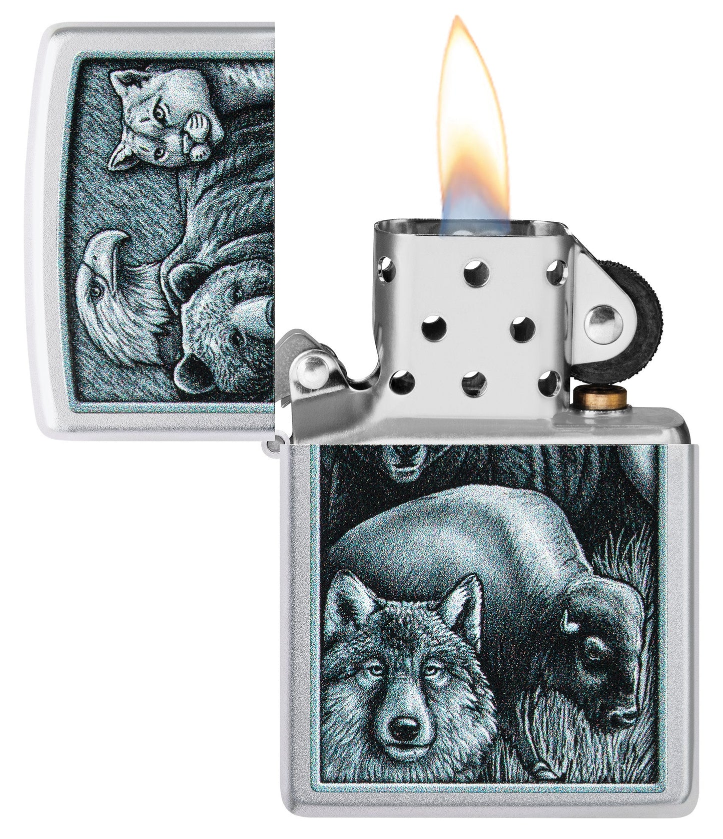 Some of Mother Nature's most powerful creatures come together on this classic Satin Chrome lighter in a monochromatic Color Image design. Comes packaged in a gift box. For optimal performance fill with Zippo lighter fuel.