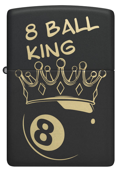 Perfect for any pool hall champion, this classic Black Matte lighter features a Laser Engrave design of an Eight ball adorned with a crown. Comes packaged in a gift box. For optimal performance fill with Zippo lighter fuel.
