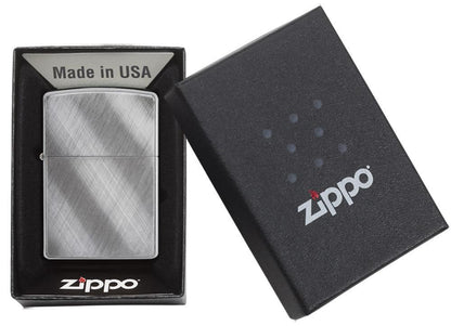 Zippo's classic Brushed Chrome finish takes on a new look! Directional brushing results in creative design patterns with the enduring appeal of traditional Brushed Chrome, but with a fresh new perspective. The diagonal weave pattern on this windproof lighter gives it the look of diagonal stripes that fade from dark to light. Comes packaged in a gift box. For optimal performance, fill with Zippo lighter fuel.