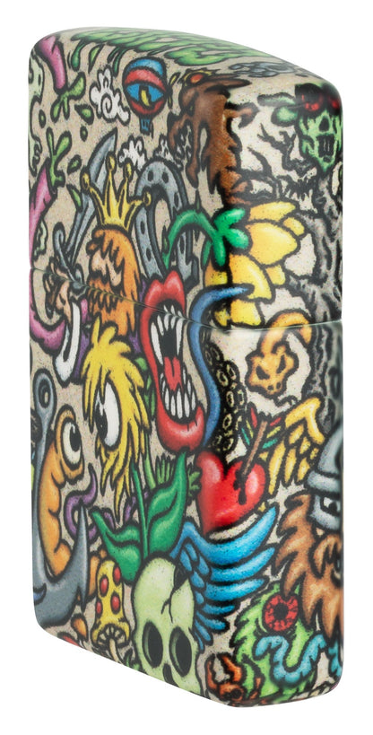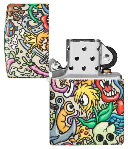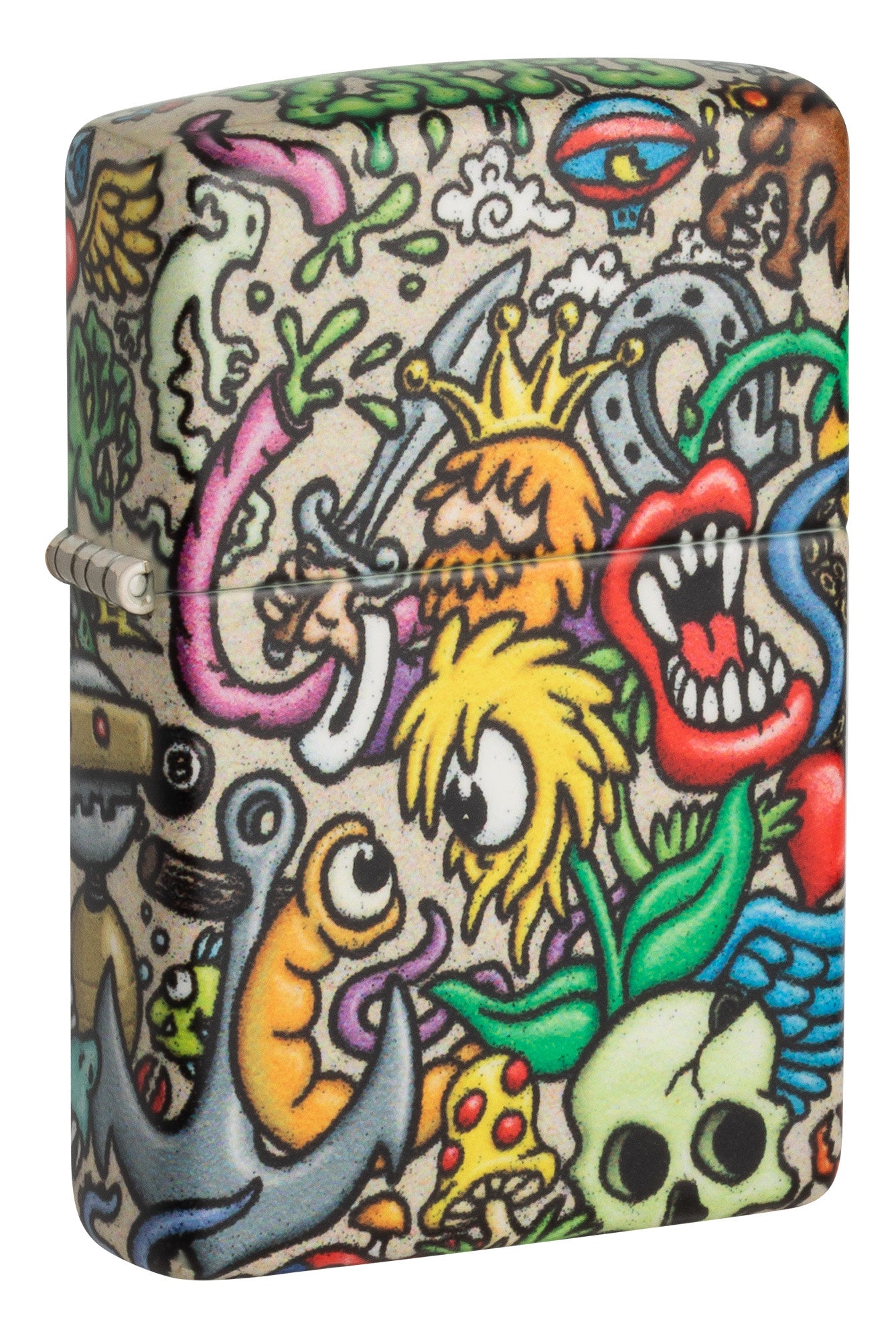 You're sure to notice something - or someone - new whenever you gaze at this incredible 540 Color lighter! A whole host of characters mixes and mingles in this totally fun tattoo-inspired design, which even integrates your favorite brand name across the lighter's crown. Comes packaged in a gift box. For optimal performance fill with Zippo lighter fuel.