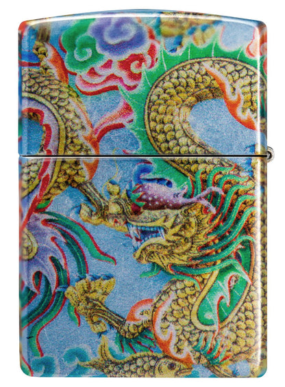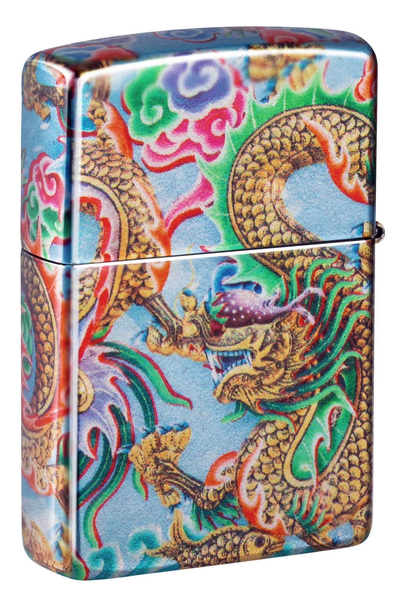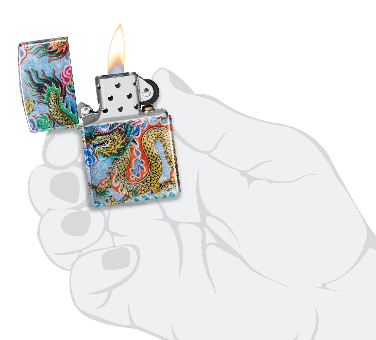 We unveiled 540 Fusion last autumn, and we're just getting started! A shimmering dragon swirls around all sides of this lighter and is complemented with iridescent metallic tones, combining the hallmarks of both our 540 Color and Fusion processes. Comes packaged in a gift box. For optimal performance, fill with Zippo lighter fuel.