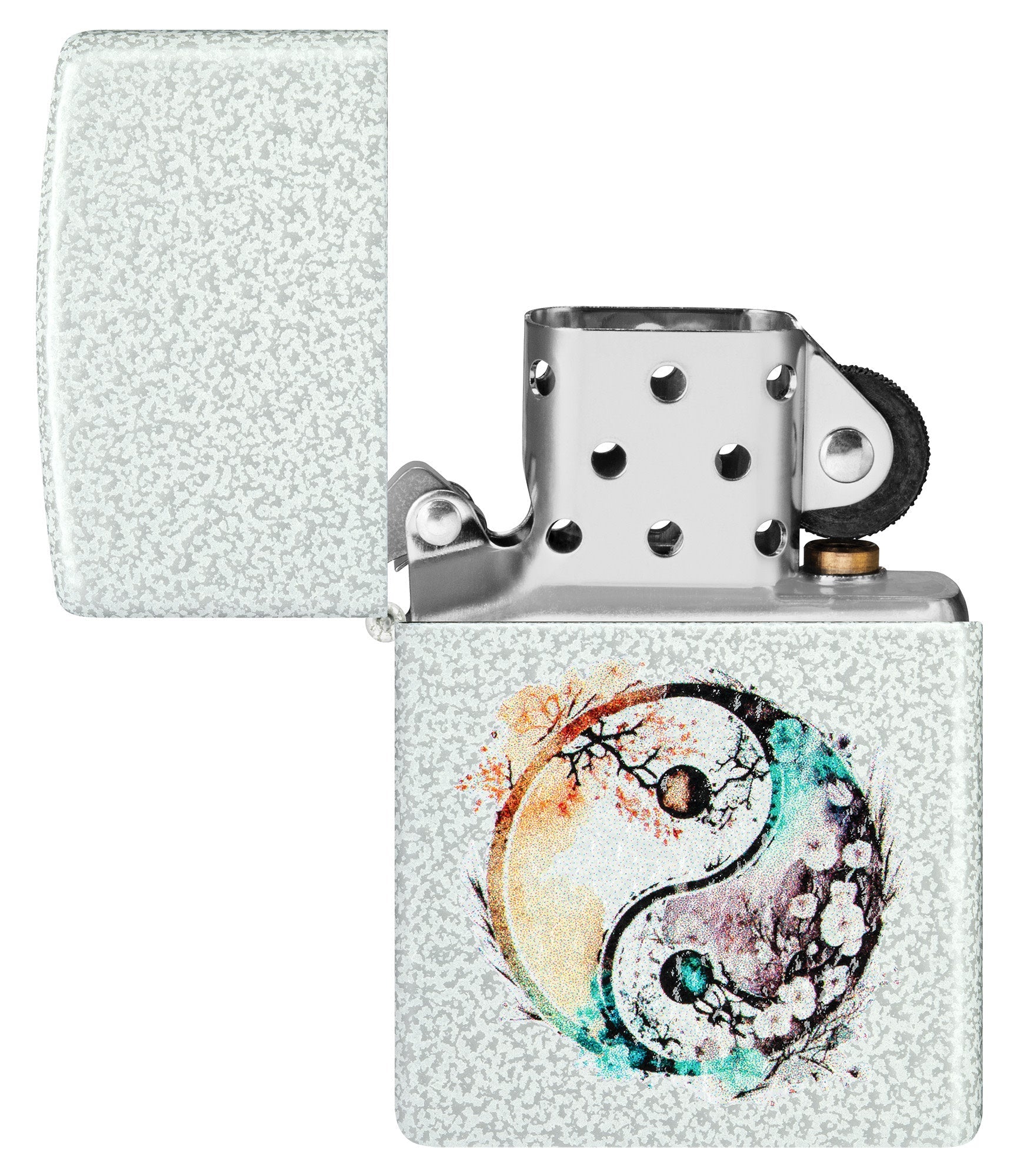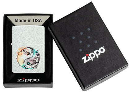 Yin and Yang are beautifully represented on this classic Glacier lighter. The ancient symbol is comprised of delicate blooms and branches in the soothing Color Image design. Comes packaged in a gift box. For optimal performance fill with Zippo lighter fuel.