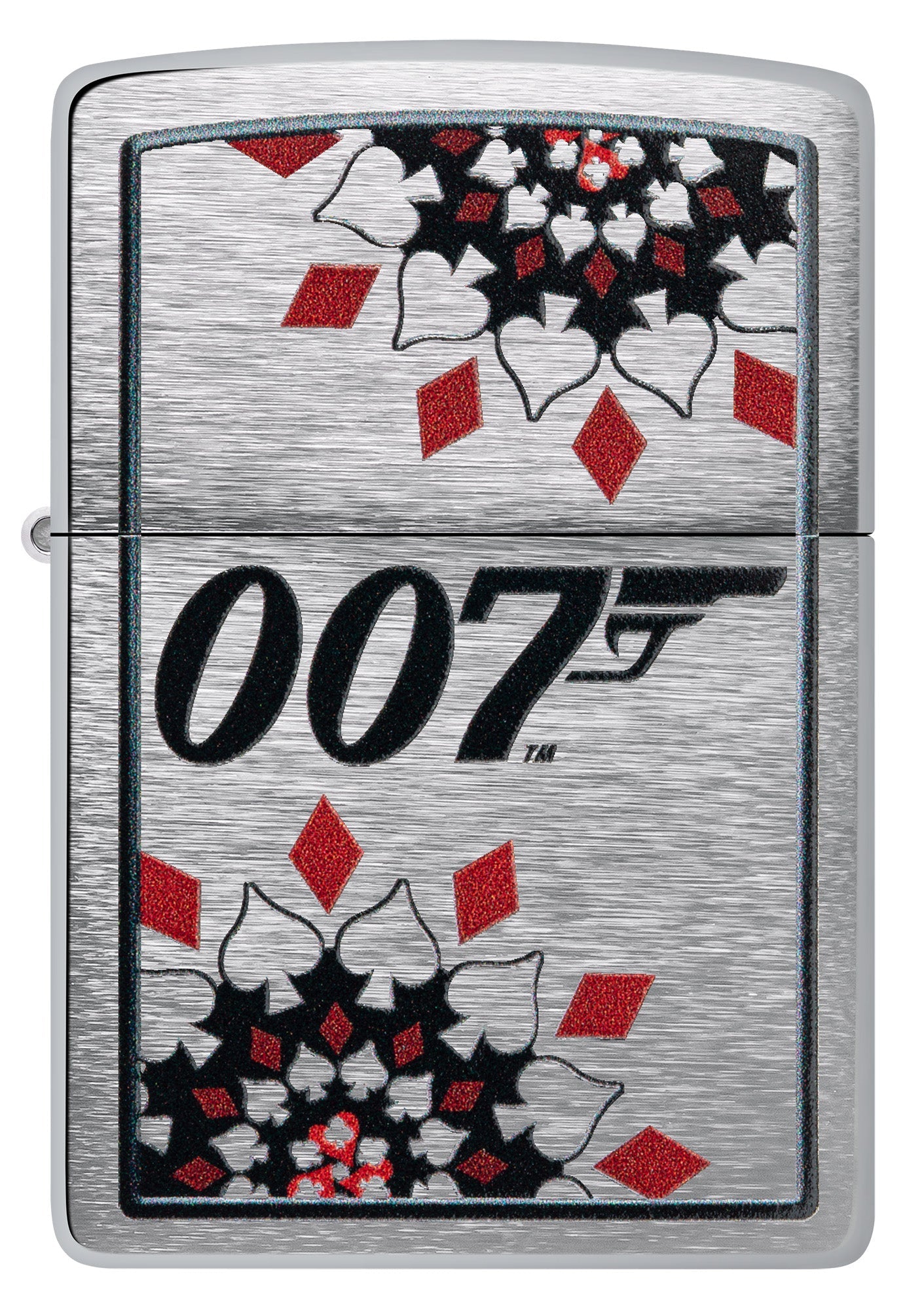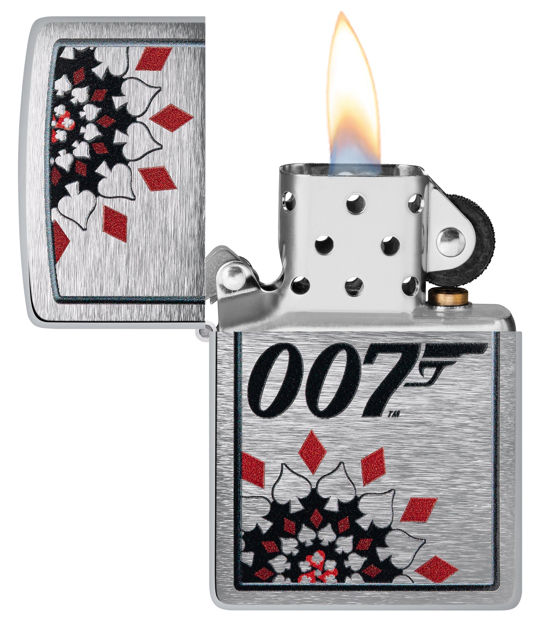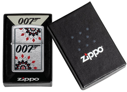 This always-dapper Brushed Chrome lighter features the iconic 007™ logo framed by a Casino Royale motif in a sophisticated Color Image design. Comes packaged in a gift box. For optimal performance fill with Zippo lighter fuel.