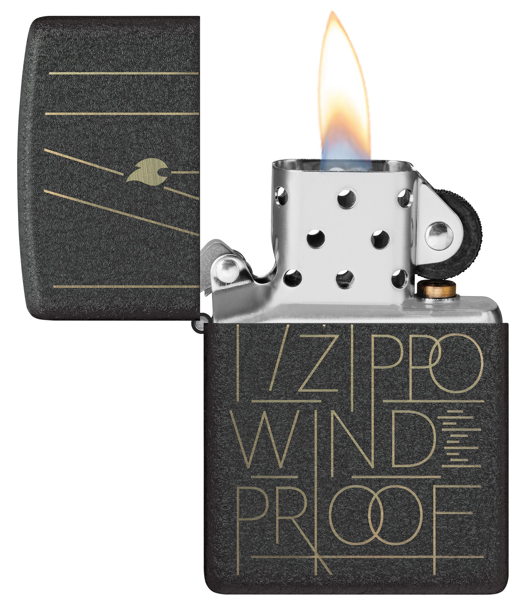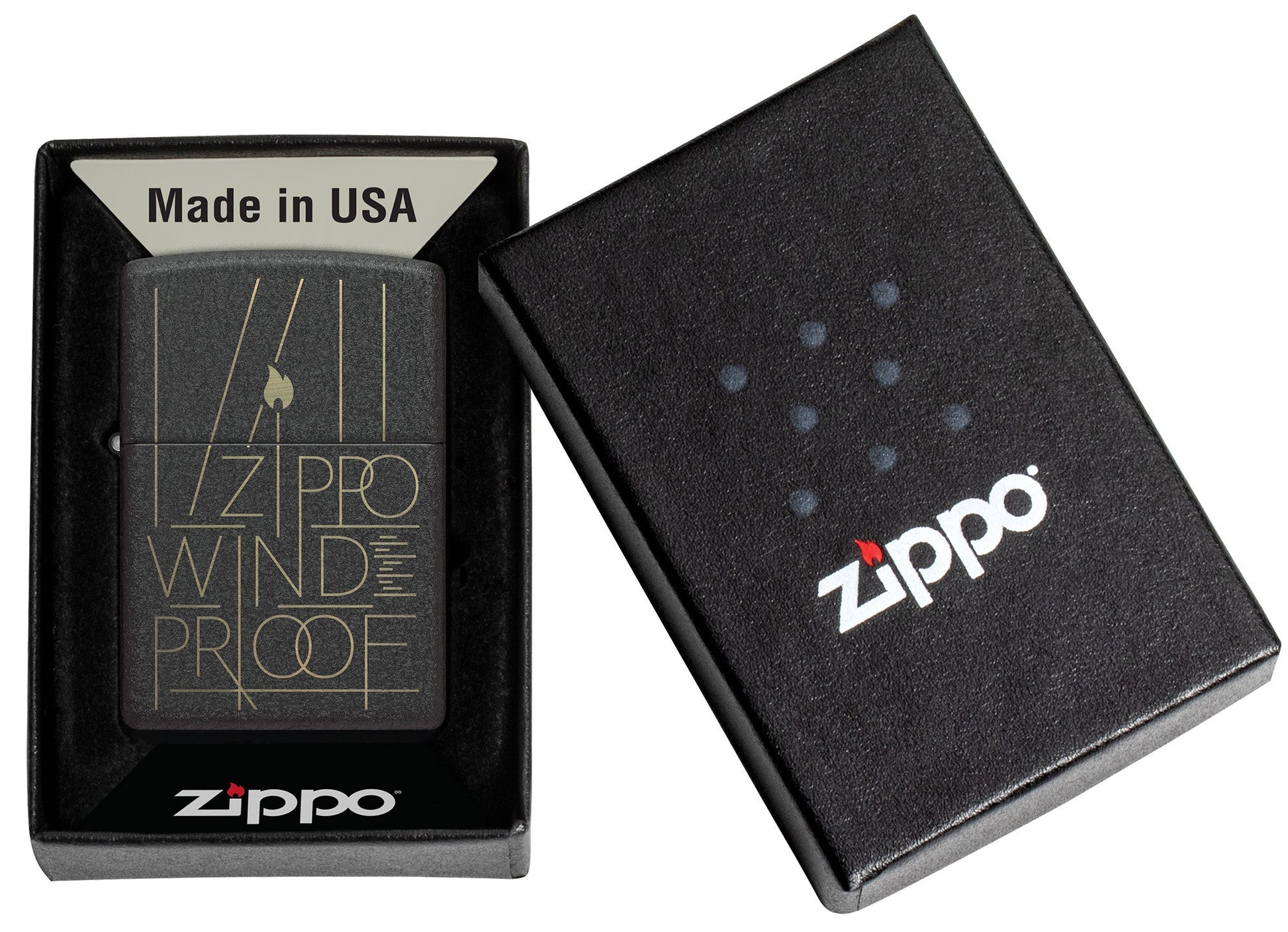 - Genuine Zippo windproof lighter with distinctive Zippo "click"