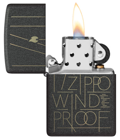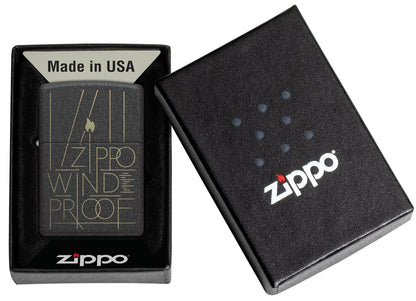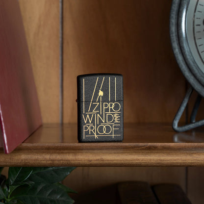 This classic Black Crackle® lighter is adorned with a modern Laser Engrave design featuring the inscription "Zippo Windproof" among crisp lines and the Zippo flame icon. Comes packaged in a gift box. For optimal performance fill with Zippo lighter fuel.
