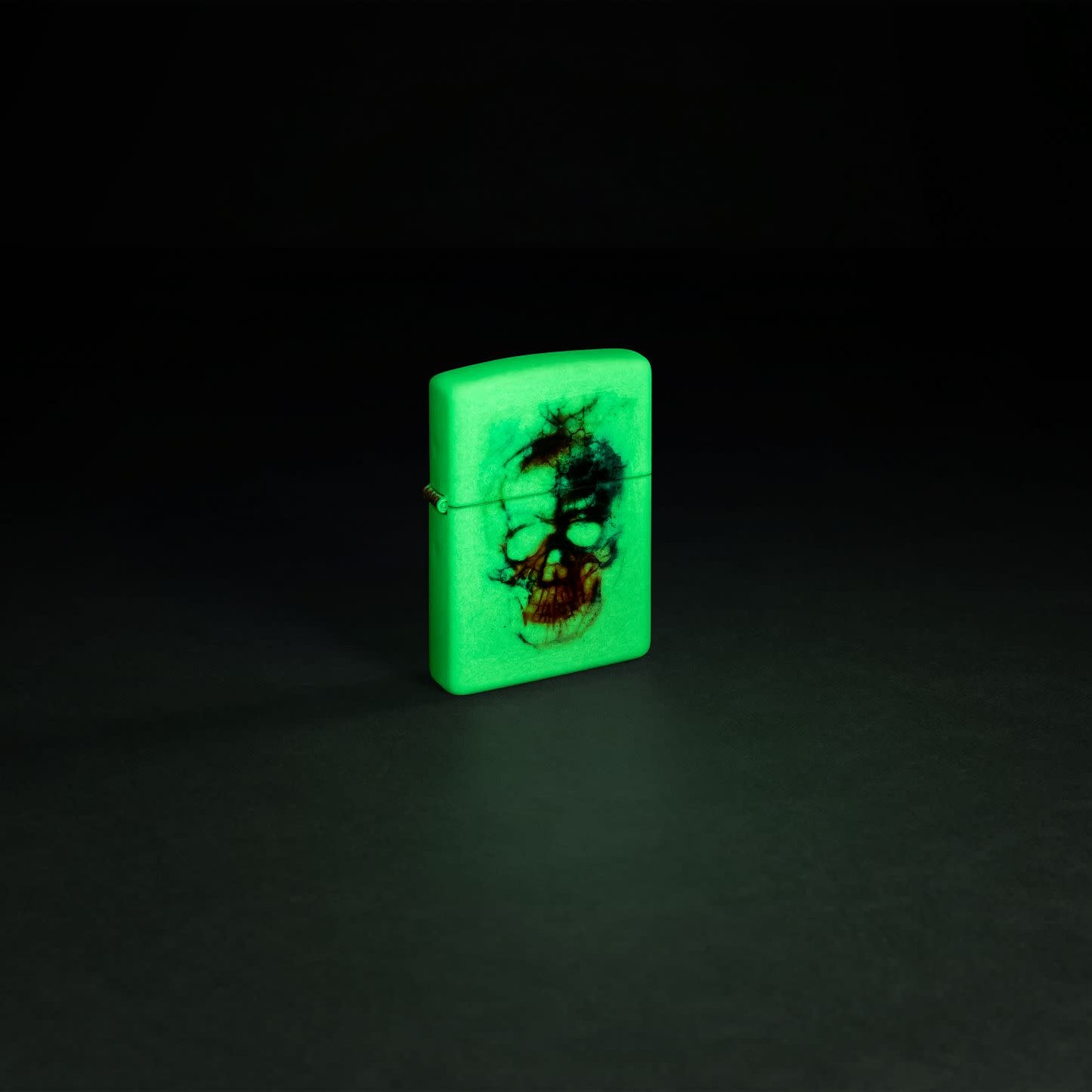 Vibrant, cheerful watercolors coalesce to create a menacing skull in this striking Color Image design, which comes to life after dark thanks to our proprietary Glow-in-the-Dark finish. Comes packaged in a gift box. For optimal performance, fill with Zippo lighter fuel.