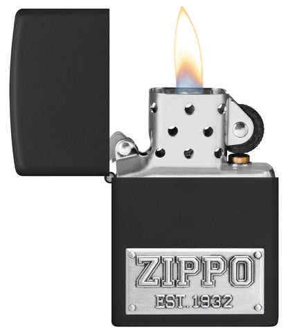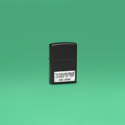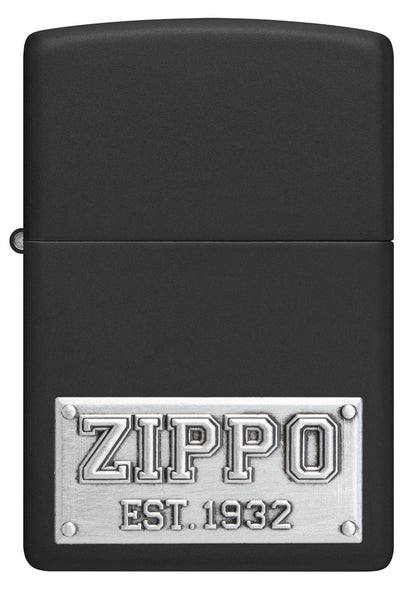 Grab this Black Matte lighter before you hit the open road. The sleek chrome emblem mimics a license plate featuring your favorite brand and our founding year. Comes packaged in a gift box. For optimal performance, fill with Zippo lighter fuel.